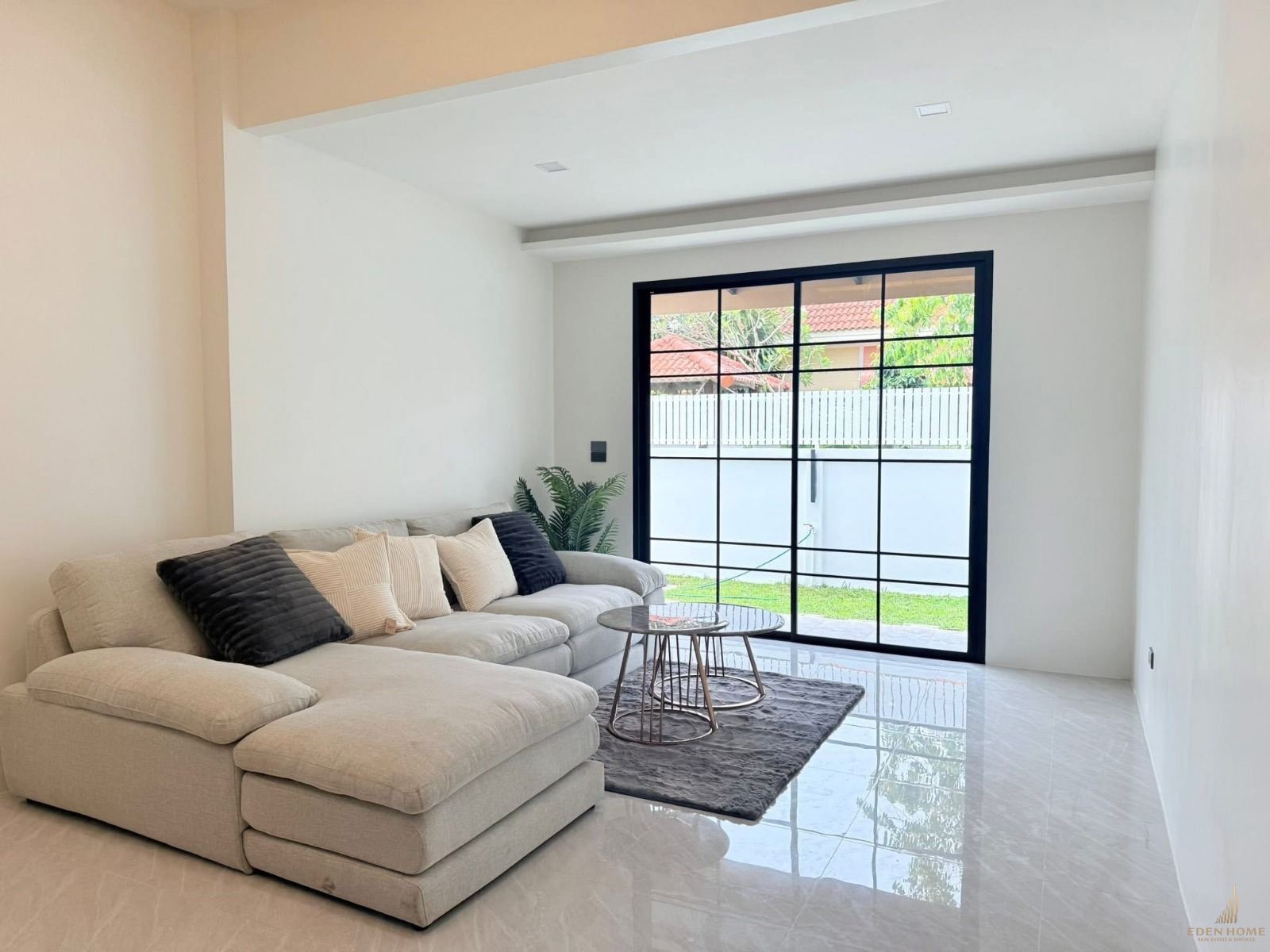 This newly built modern home offers clean architectural lines and thoughtful interior finishes. With 3 bedrooms and 3 bathrooms, the property boasts a fully equipped kitchen with an island, generous living space, and a secure gated entrance. Perfect for families or as a peaceful retreat with easy access to central Phuket.