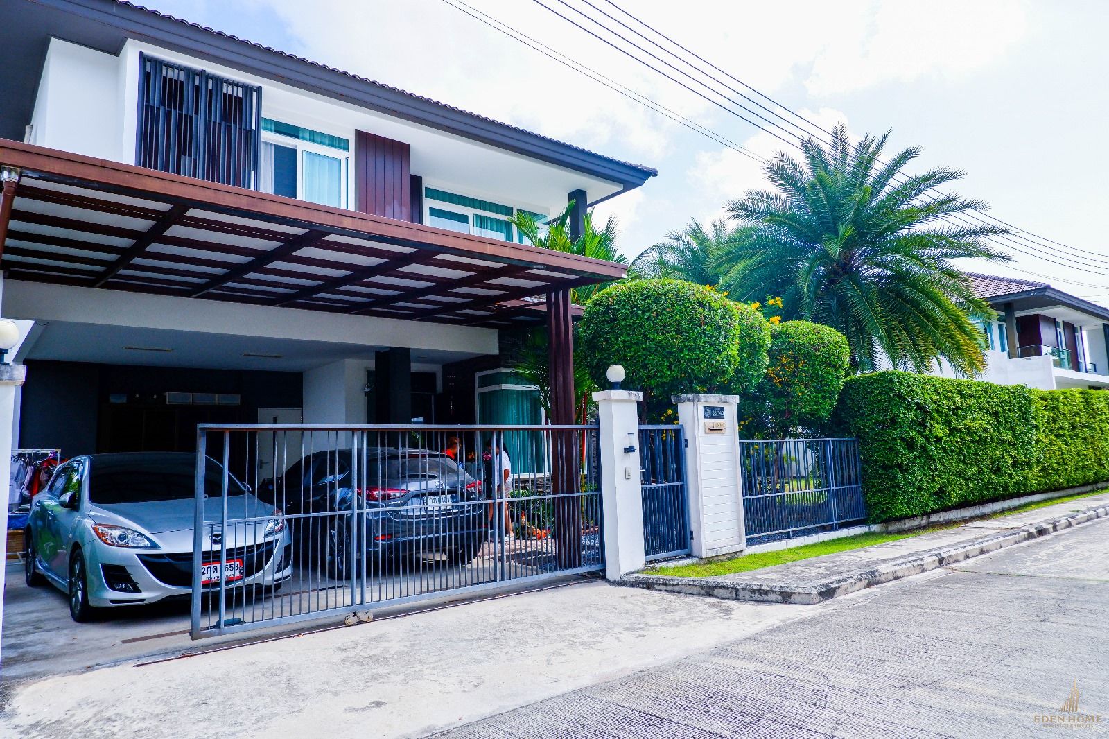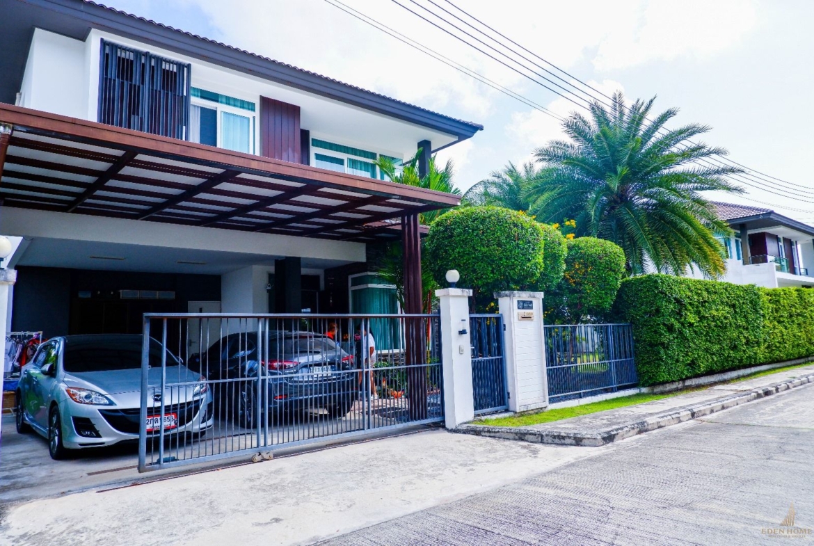 This is a detached house in Chalong, There are 4 bedrooms 3 bathrooms and come with large garden, There are 2 storie, The house is designed in Modern. The three bedrooms are on the second floor and 1 bedroom on the first floor, Perfect layout by having a spacious living room, separate fitted kitchen, dining area, laundry room, living room and good private,
