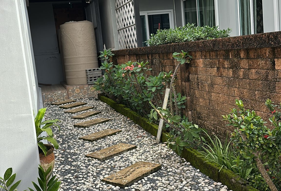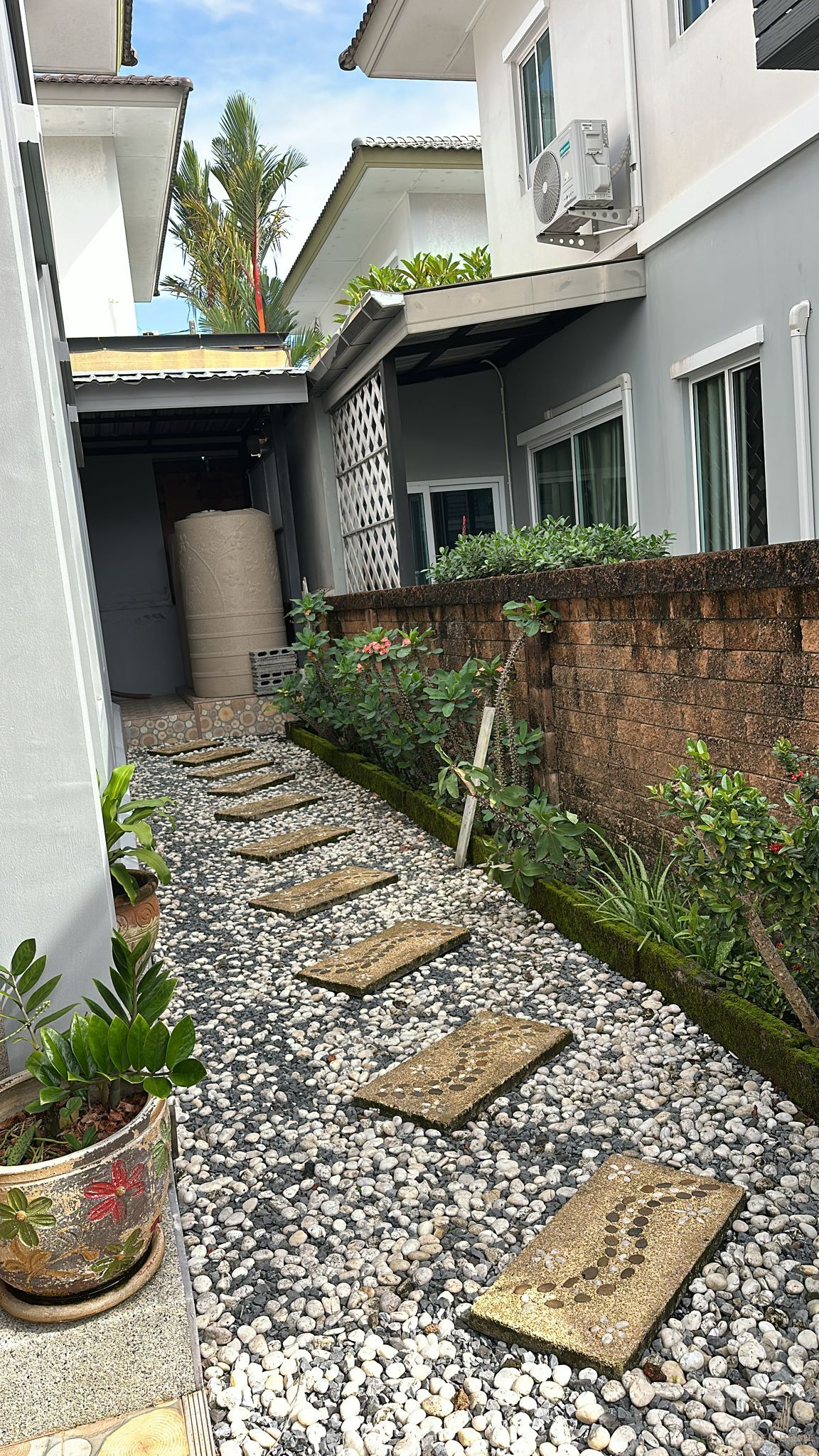 This cozy 3-Bedroom and 2-Bathroom townhouse is located the lush green hills of Kathu. The house is inside a secured neighborhood. The neighborhood has a lovely park residents can enjoy and is pleasant to walk around in. The House has 2-storey, with king-sized beds in each room, ensuring that all residents can have a good night rest. The living room also has a dining area and a full kitchen area for cooking food. There is also a back yard area where outside activities can be enjoyed, making this house the perfect place for those who would like a simple place to call home with their friends or family.