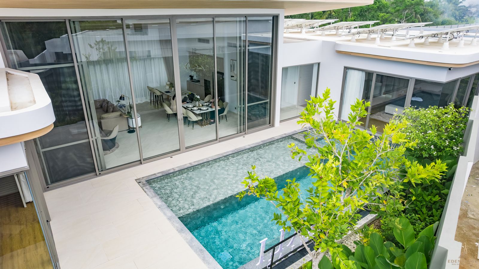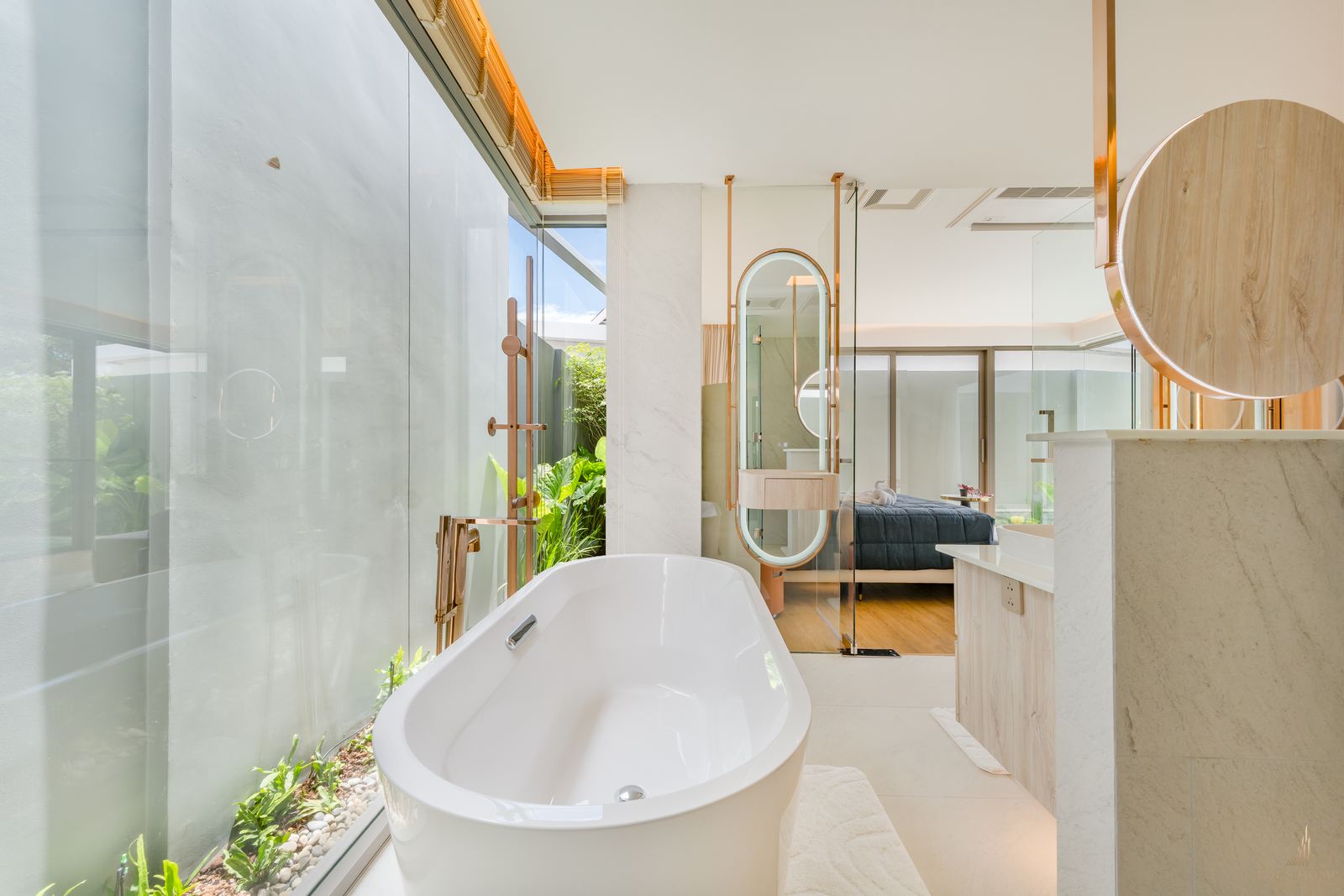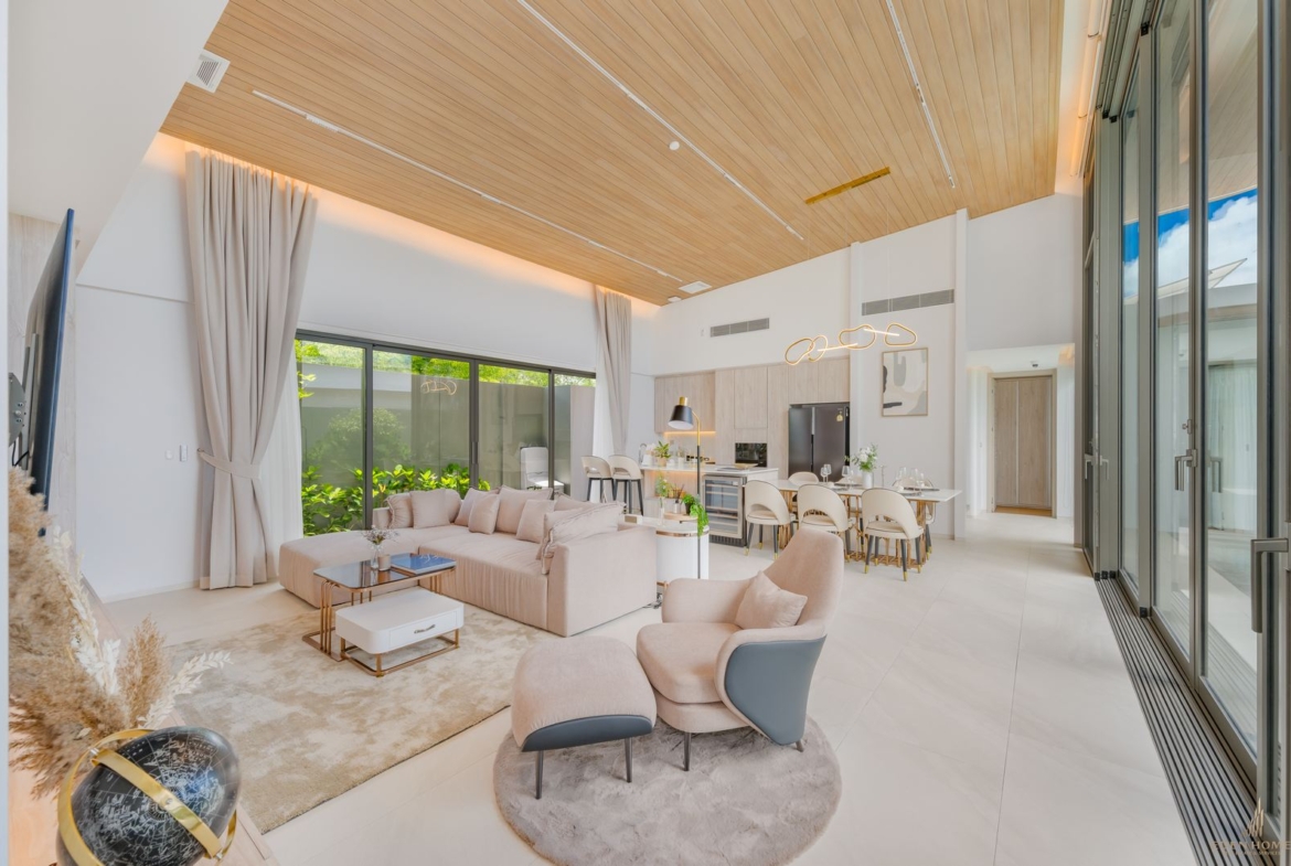 Located near Bang Tao Beach and Laguna Phuket area, these 3-bedroom villas (315–345 sq.m. on 99–127 sq.w. plots) Designed for modern, eco-friendly living, each villa features open, sunlit interiors, fresh-air ventilation without AC, underground systems, and solar roofs for energy efficiency — creating a serene, connected lifestyle for all generations.