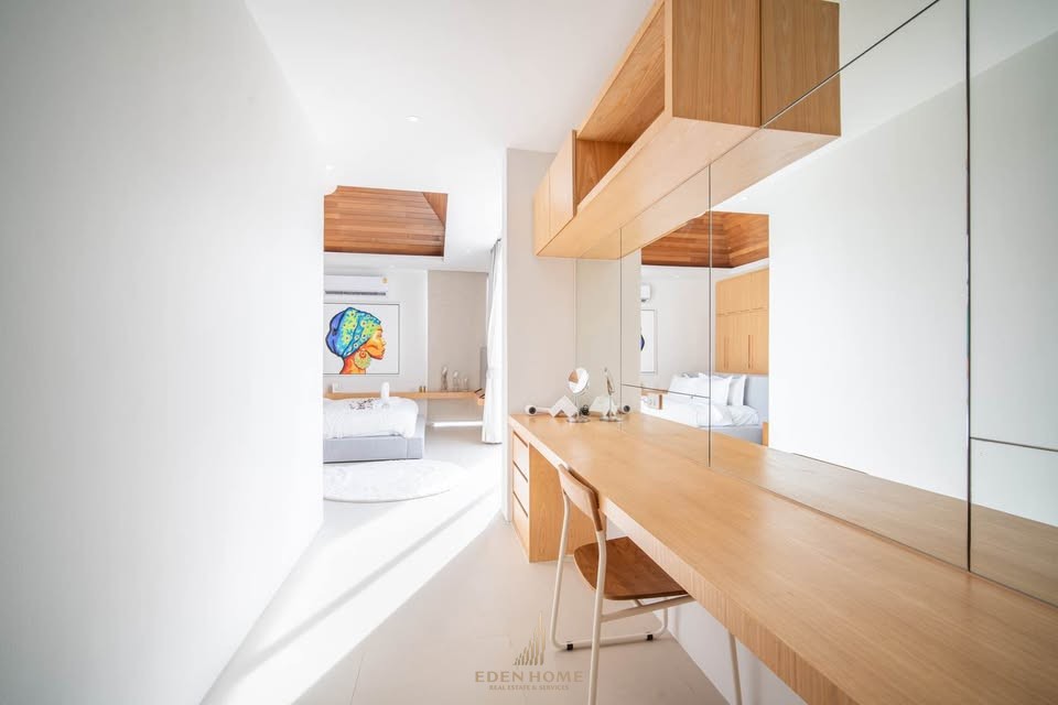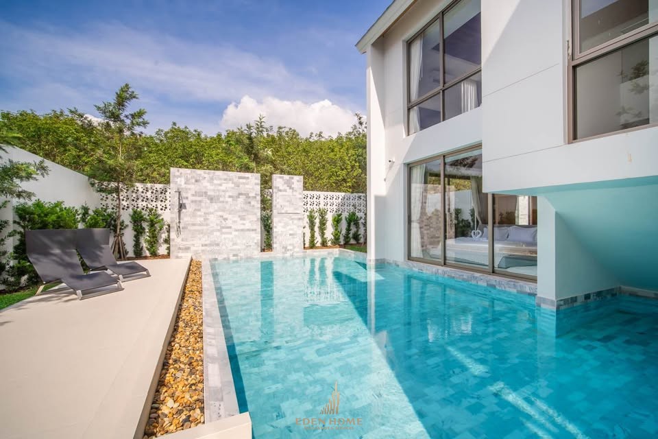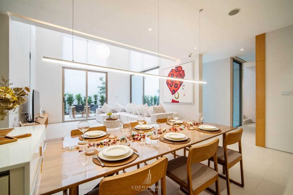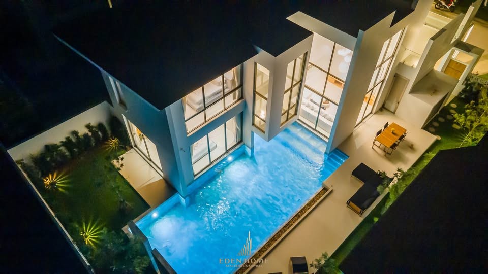 Experience refined living in this beautifully crafted Japanese-inspired private pool villa, blending minimalist elegance with warm natural tones. Fully furnished with high-end materials, double-volume ceilings, a spacious pool deck, and smart home features—this villa delivers both style and exceptional investment value.