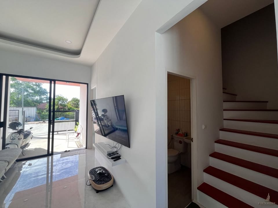 This spacious 3 bedrooms 3 bathroom,1 living room, kitchen, house in Chalong, The house also comes new furnished with a TV, Sofa, fully equipped kitchen, big area and Free Wi-Fi. The house designed in a contemporary manner, with living room, kitchen spac. There is a small walkway space for a garden. The project approximately of 148 sqm. Ready to move in only bring your belonging, Perfect for family relax with long period in Phuket.
