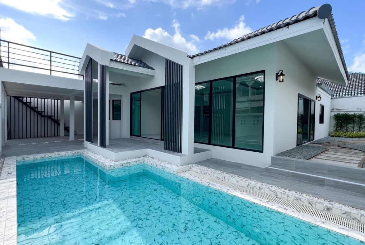 This 4 Bedroom 4 Bathroom Villa in Chalong is built in a contemporary design with Nordic style, It’s beautiful furniture and a swimming pool. This property features a spacious outdoor area including a tropical swimming pool. One of its best features is its extraordinarily large indoor terrarium in the living room, allowing you to appreciate the tropical nature and sunshine while enjoying precious times with your loved ones. There are 300 sqm of Land and 350 sqm of Usable area.