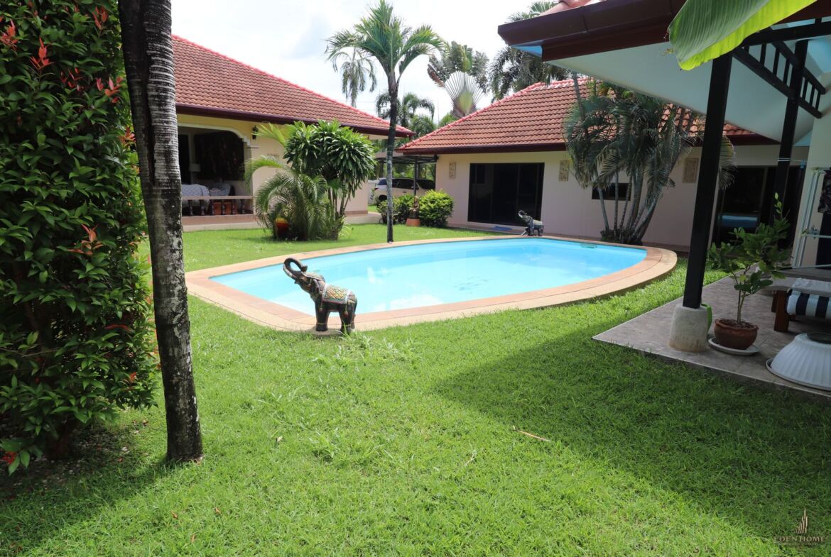 A 4 bedroom house with big garden on a total land plot of 1200 sqm is now for sale. The house is in Rawai in a quiet, dead end street, walking distance to the French restaurant Le Celtique. There are 3 building on the premises.